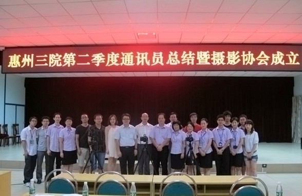 913,在我院工地会议室召开了第二季度通讯员总结大会暨摄影协会成立仪式。会上,经营发展部主任黄宇强对第二季度通讯员完成的稿件、网站建设的情况进行了总结,对优秀的科室通讯员进行表彰,并给予相应奖励,对未完成稿件量的科室通讯员进行了相应的批评和处罚。并邀请了省中医胡延滨处长针对我院的宣传工作情况进行点评。与此同时,新华通讯社壮锦老师、南方电视台左斌老师都莅临现场为通讯员们进行生动地授课,让在场的每一位人员都受益匪浅。