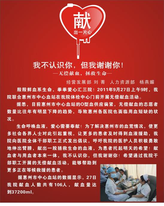 “无偿献血,拯救生命”——我院联合市中心血站开展无偿献血活动