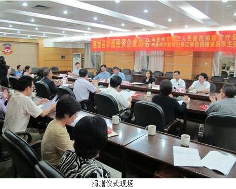 另外,在当天捐赠仪式上,惠城区外商投资企业协会名誉会长缪森龙先生也代表向惠州市新世纪技工学校的贫困学生捐赠了120万元。