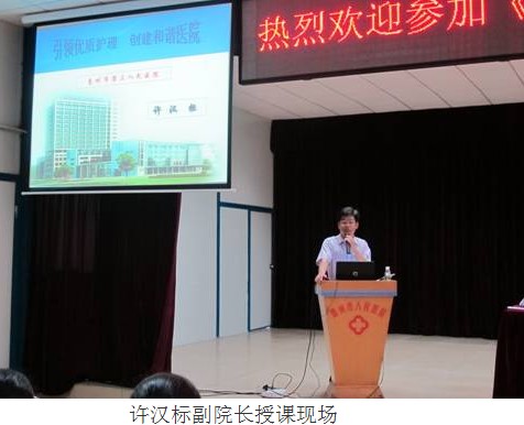 紧接着,许汉标副院长进行了第一讲“引领优质护理,创建和谐医院”,许副院长就如何开展优质护理服务及如何建立优质护理服务长效机制作了精彩演讲,运用古今典型案例,引发学员思考,台下不时传来阵阵掌声。