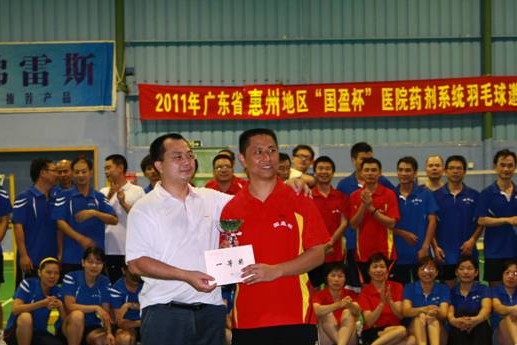 1012晚,2011年广东省国盈杯羽毛球邀请赛惠州赛区开赛。惠州市第三人民医院药剂系统代表队经过长达3个小时20场次奋力拼搏,最终战胜了实力雄厚的惠州市中心医院、惠州市第一人民医院、惠州市中医院和惠州市第六人民医院(惠阳区人民医院)的代表队,以男单4:0、女单3:1、男双3:1、女双4:0和混双2:2优良成绩斩获冠军,并获得本届广东省药剂系统羽毛球邀请赛总决赛唯一的惠州地区参赛名额,我院代表队将于1029日前往广州参加最后的总决赛。
