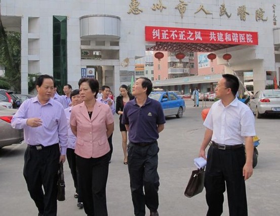 会后,黄洁秋副局长、杨小敏组长、邱敏强主任等一行在马显力院长的陪同下,参观了医院门诊大厅、临床科室以及在建的新综合大楼。市卫生局规财科工作人员及第一人民医院药剂专家则到我院药剂科进行了督导检查。