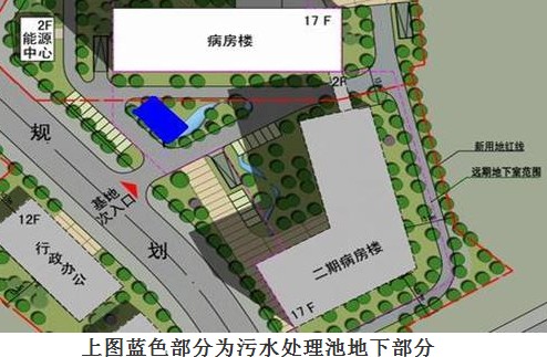考虑到我院大楼在完工后即要投入使用,没有更多的时间去开展许多附属配套工程,作为其中重要项目之一的污水处理系统工程就要提前开工建设,保证能提前使用。
