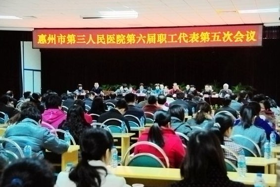 惠风和畅,风正帆扬,乘着医院政通人和、快速发展的东风,2012年1月7日~8日,我院隆重召开了第六届职工代表大会第五次会议。参加会议的正式代表有99名,特邀代表48名。惠城区区委常委、宣传部部长陈娟,惠城区卫生局局长邹忠平,区工会主席林彩英,工会副主席李燕红,组宣部部长张晓芬等领导出席了本次大会。