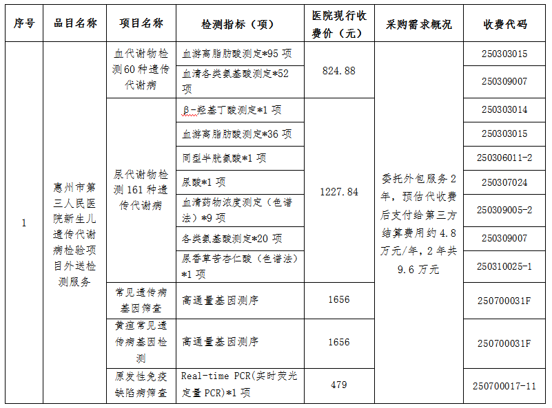 我院拟对新生儿遗传代谢病检验项目外送检测服务开展市场调研,公开征集相关资料。请符合我院功能需求和配置要求,具备合格资质,具有相应检验检测服务能力的公司将相关资料按要求、在规定的时间内送达我院报名地点。