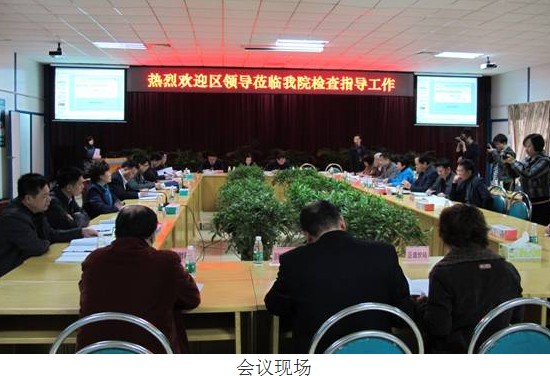 随后,周文高区长、林利育常务副区长、陈娟常委一行在我院多功能会议室召开了现场办公会。马显力院长首先汇报了医院综合大楼建设工作进展及创建“三甲”医院工作情况。区卫生局江南局长随即作了重要补充。
