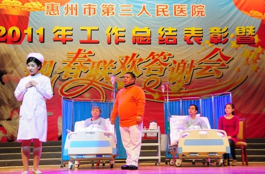 2012117,农历辛卯年十二月廿四,在龙年春节即将到来之际,我院在惠州江北会议中心圆满举行了2011年工作总结表彰暨迎春联欢答谢会。大会总结了2011年我院各项工作,尤其是“双优工作”(流程优化和优质服务)以及人文关怀建设方面的突出成绩,表彰了我院2011年工作成绩表现优越的先进科室和个人,表达了对长期关注支持三院建设发展的各级领导及社会各界人士的感恩之情,提振了全院明年推行精细化管理再创辉煌的信心,鼓舞了全院员工上下一心誓创“三甲”的士气,联欢会节目精彩纷呈,员工生日仪式感动人心,抽奖环节观众热情高涨,医院员工与邀请领导嘉宾近千人参加了本次总结表彰暨迎春联欢答谢会,共同度过了一个欢乐喜庆的下午!(文/欧永杰 /欧永杰 罗汝斌 范泽锋)