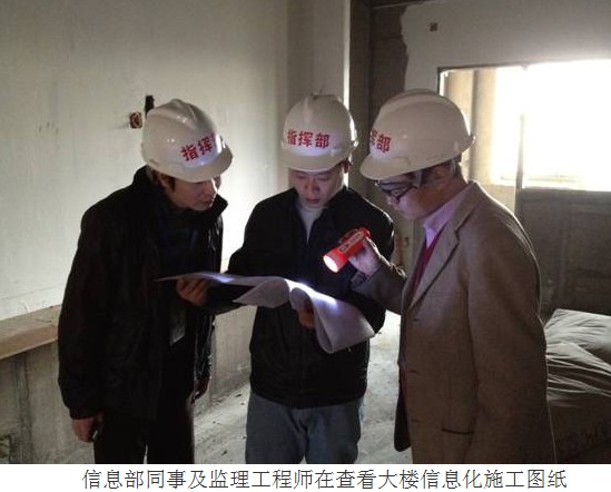 我院的信息化工程网络布线的施工自喜庆热闹的春节后已于前日进驻新大楼现场施工。为了保障信息化工程建设的质量,我院外聘了信息工程监理公司的专业信息监理工程师专门为我院的信息化工程监理。在节后已多次进过大楼工地现场查看过大楼的布局,为以后的监理工作做好基础。此次是大楼信息化布线工程正式施工后的首次现场监理工作。由监理工程师和信息部同事组成的监理团队在施工现场查看了信息化工程布线施工的进度;查看了网络电缆的线材,线管等是否符合施工合同的要求;检查了网络布线的走向及各个信息点的布置是否符合图纸及信息化工程规范的要求。从今天检查的结果来看,除了施工的进度还需继续跟紧,其他的各项指标都符合要求。