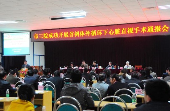 2012年2月20日,我院在多功能会议室召开了关于我院成功独立开展首例体外循环下的心脏直视手术通报会。会议邀请了惠州日报、东江时报、中新社、南方都市报、南方日报、西子湖畔、惠州电视台、惠州电台等惠州市各大媒体记者。我院陈小凯副院长、许汉标副院长、吴修信院长助理、邓汉东副院长出席了通报会,何小慧工会主席主持了会议。另外,部分手术组成员、社会爱心人士、我院合作医疗单位代表及院内通讯员等共60多人参加了会议。