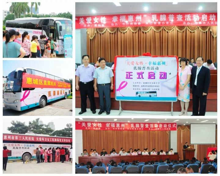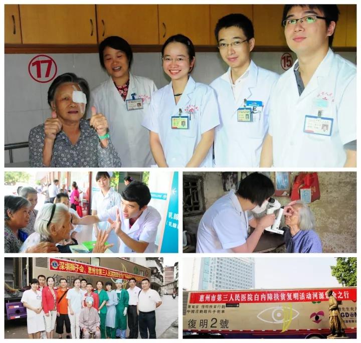 提倡公益慈善。五年来,惠州三院人爱心足迹遍布省内外乃至西藏地区。开展“复明工程”,让1000多名贫困白内障患者重见光明。免费为女性乳腺疾病普查项目筛查3.1万例。与惠州市港澳基金会合作开展“慈爱救心”公益项目,三年来为家庭贫困的近百名先心病患儿提供免费救治,让他们重获新生。成立“香港耳聪工程惠州站”,为近百名家庭贫困耳疾患者实施手术,让听障儿童开启“有声世界”。坚持医院公益性,积极深入基层开展义诊、对口帮扶、健康讲座等活动,持续开展六大病种筛查,公益活动惠及群众近6万人,积极传播健康正能量,获社会各界认可与好评。