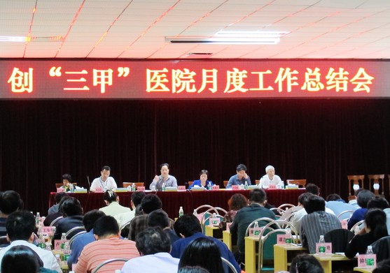 3月31日下午,我院创“三甲”月度总结会在工地多功能会议室召开,院领导、中层干部及“三甲”小组长共计150余人参加了会议,会议由吴修信院长助理主持。