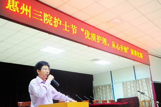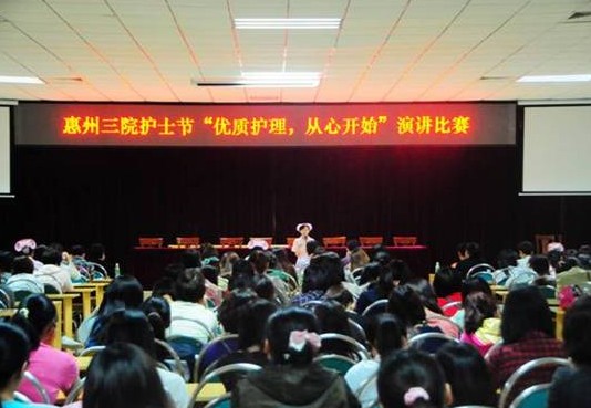 为纪念2012年国际护士节,展示白衣天使积极进取、勇于奉献、迎接时代挑战的精神风貌和理想追求,促进护理事业发展,惠城区卫生局拟于4月26日举行惠城区2012年国际护士节“优质护理,从心做起”演讲比赛活动。我院护理部高度重视,分别利用下午和晚上时间在多功能会议室举行了预赛和决赛。