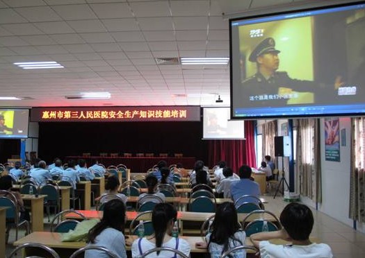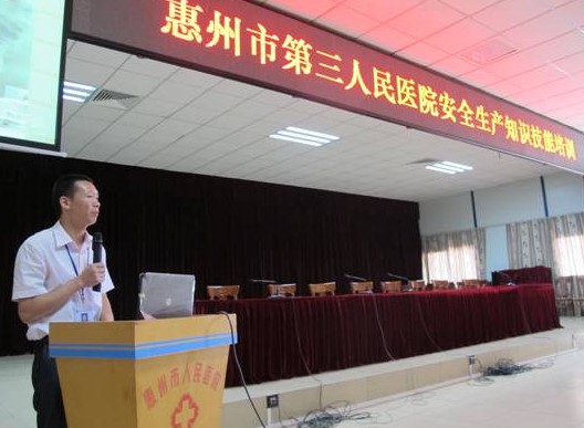 61下午3时,医院邀请了广东省消防协会的何丹庆教官,并组织各科室人员在工地多功能会议室召开了安全生产知识技能培训讲座,院领导亲自主持,并要求各科室分批次培训,首批100多人参加了培训。