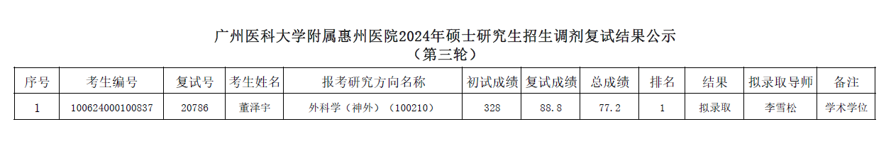 附件:广州医科大学附属惠州医院2024年硕士研究生招生第三轮复试结果公示