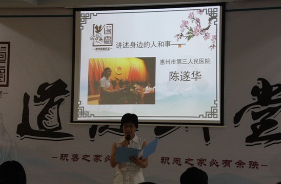 区卫生局党委书记刘菊芳在第一期活动上作了讲话,她指出区卫生局“道德讲堂”建设工作是为了全面贯彻区委关于落实中共中央国务院《公民道德建设实施纲要》以及 “三德教育建设年活动”的部署而开展的,除了“惠城区卫生局机关道德讲堂”,还选取了市第三人民医院、市第四人民医院、市第二妇幼保健院为“惠城区医疗卫生行业道德讲堂”的试点单位。“道德讲堂”建设活动时间从今年6月到12月,2013年、2014年为巩固和推广阶段,以点带面,全面推进区卫生系统的“道德讲堂”建设工作,引导卫生系统公职人员投身道德实践活动,进一步推动形成“办事和顺、家庭和睦、人际和谐”的医疗卫生和谐新面貌。