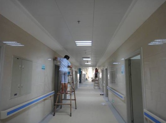 随着大楼部分楼层接收工作的完成,85日起,医院物管爱玛客公司随即安排工作人员开始了全面、系统的卫生清除工作。至87日,已完成病房楼1516楼整层及其它部分楼层的卫生清除,并对1516楼的PVC地面进行了初步的打蜡。(/ 筹建办 周伟荣)