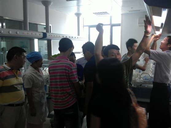 图为儿科医护人员参观NICU