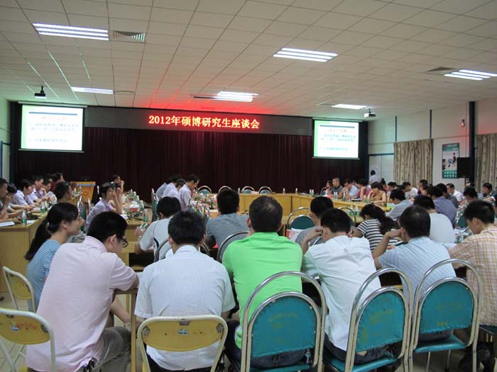 2012年8月29日晚,人力资源部组织召开了我院硕博研究生座谈会,参加座谈会的有院领导班子成员、部分职能科主任及本院硕博研究生共100余人。