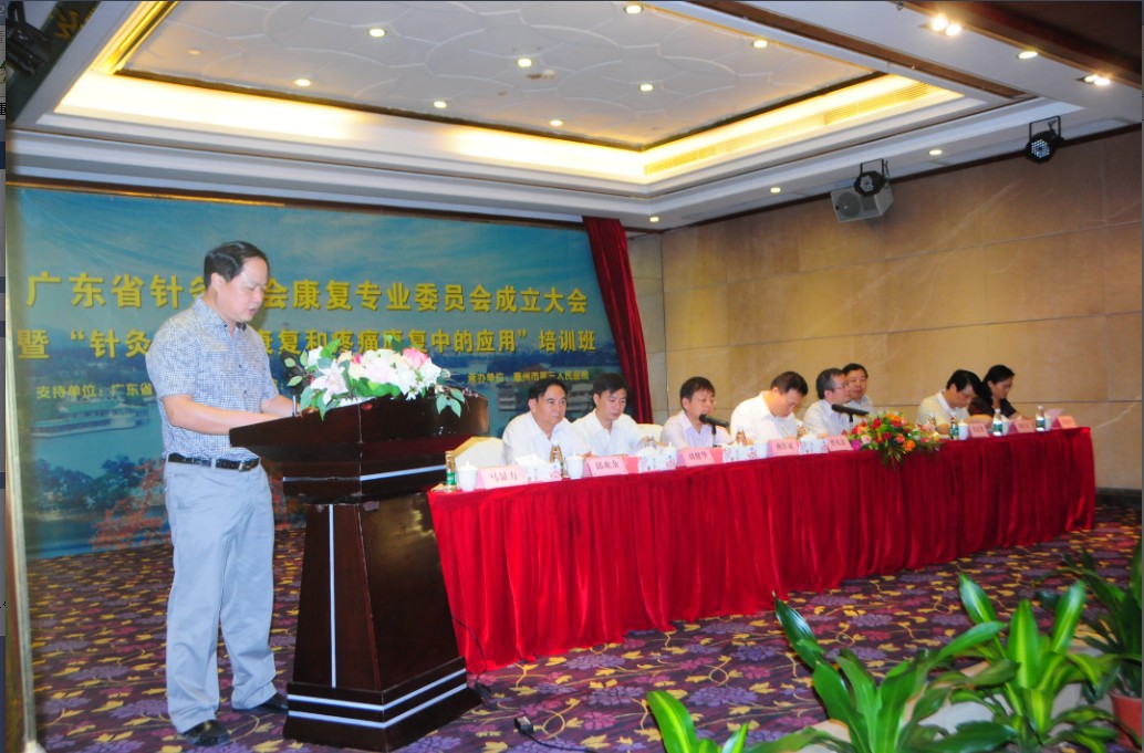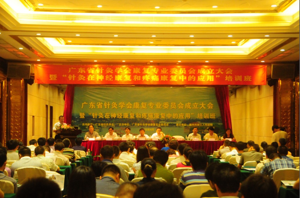 2012年9月8日,广东省针灸学会康复专业委员会成立大会暨“针灸在神经康复和疼痛康复中的应用”培训班在惠州市金华悦国际酒店四楼会议室隆重召开。本次会议由我院康复科承办,来自深圳、中山、佛山、东莞等周边地区医院的150余名代表参会。大会由广东省针灸学会秘书长刘健华教授主持。