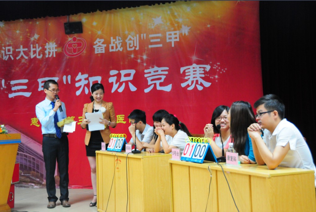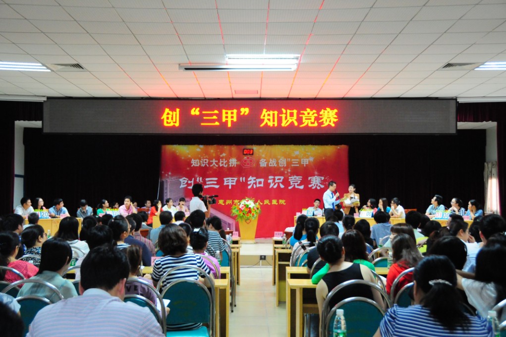今年是我院创建“三甲”医院的关键年,为配合我院创“三甲”工作进程,在医院工会的主持下及“三甲”办、科教部及护理部等部门的大力协助下,2012年创“三甲”知识竞赛于10月14日上午随着李春兰副院长的致辞正式拉开了帷幕。