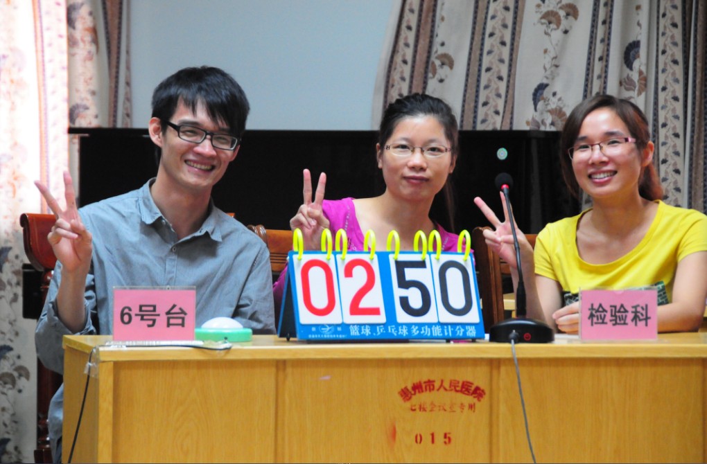 此次活动得到了惠城区总工会、惠城区卫生局的大力支持,尤其是得到了我院院领导班子的高度重视。本次竞赛共有35队共105人参加,分六轮(临床5轮,行政1轮)举行,题型包括必答题、抢答题和挑战题三种题型,内容有三基知识、核心制度、法律法规及医院等级评审标准等,经过近5小时紧张而有序的竞赛,最终检验科在参赛队员的共同努力下以全场最高250分夺魁,神经外科、放射科、ICU获二等奖,急诊科、康复科、麻醉科、泌尿科、消化内科获三等奖。行政院感、党办、设备组获一等奖,护理部、医患、后勤组获二等奖。