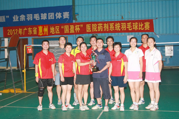 1013下午,在院领导的高度重视、药剂科叶立新主任的亲自带领下,我院药剂科的羽毛球健将们参加了2012年广东省国盈杯羽毛球邀请赛惠州赛区的比赛。本着“友谊第一、比赛第二”的比赛风格,健将们赛出了水平赛、赛出了风格,先后战胜了实力强劲的惠州市第六人民医院药剂科代表队和惠东县人民医院药剂科代表队,捧回了意义非凡的冠军杯,同时也取得了参加总决赛的惠州地区唯一名额。