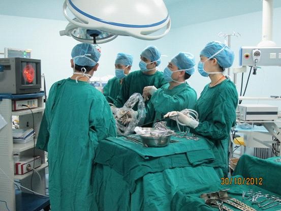 10月30日,叶维基教授和普通外科黄荣辉主任共同为一位37岁女性患者施行了“胆囊切除、胆总管探查取石、左半肝切除、肝肠吻合”手术。这个病人虽然年轻,临床表现十分典型,在CT、B超扫描中也有明显表现。