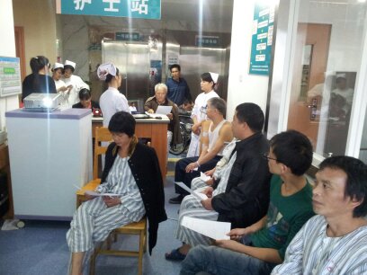 患者及家属们正在填写满意度调查表