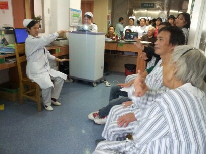 1120下午,我院康复科在康复病区护士站开展工休座谈会及“中风”知识讲座,参加成员有康复科现住院患者及其家属、康复科护士,会议由张护士长主持。(康复科  林素玲)
