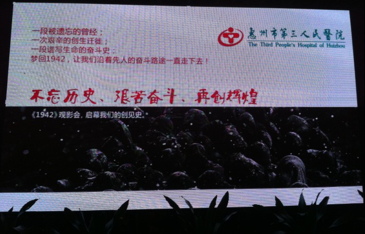为加强医院文化建设,丰富职工业余文化生活,提高职工忧患意识,加快作风转变,深化医院改革,我院于近期组织员工1200多人观看了由冯小刚导演的电影《1942》。这是一段被遗忘的曾经,一次艰辛的生命迁徙,一段谱写生命的奋斗史。