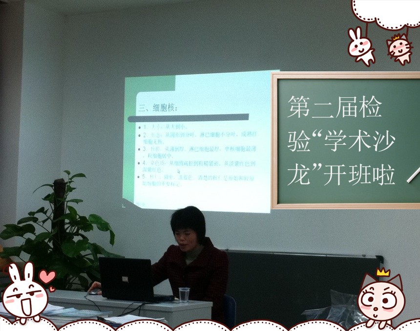 继上月成功举办了首届沙龙活动后,第二届检验科“学术沙龙”活动也于2012年12月21日下午在我科示教室举行,科室全体师生同事参加了活动,同时还诚邀血液科的陈宫玉医生前来进行学术交流。