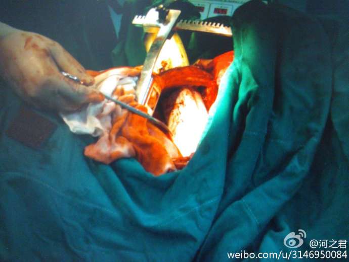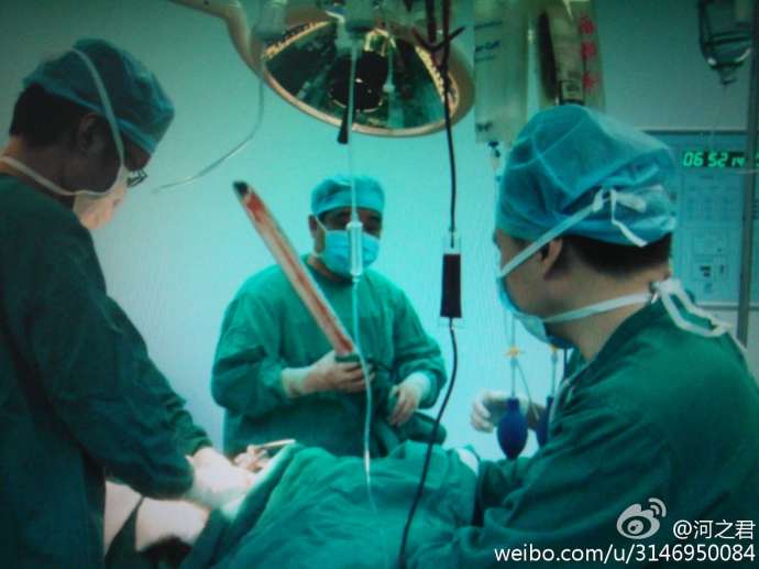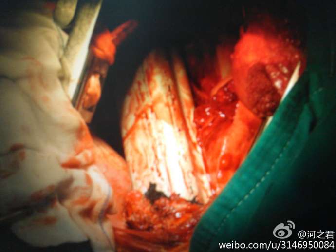 手术可真不简单,为将其穿透胸腔的金属护栏如何拿出来又不至加重患者损害,着实让手术医师颇费心机。金属护栏穿透其右侧胸部,伤口旁1-2cm,就是人的脊柱及心脏。稍有不慎即可损伤脊髓及心脏,导致患者瘫痪及死亡。心血管医学中心心胸外科钟卫权主任和张阳春医生,沉着、冷静、小心翼翼地处理其伤口,分离肌肉,组织及异物、止血,输液,输血……