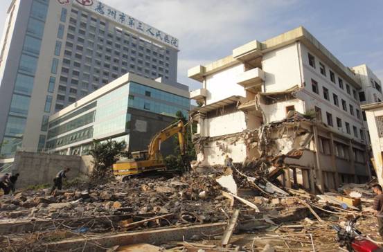我院综合大楼的病房楼、医技楼已于201210月全部投入使用,现已进入质保期。目前综合大楼的新门诊楼建设工作进展顺利20131月下旬已开始对影响新门诊楼建设的3号外科楼、原消毒供应室和消化内科楼的房屋展开拆除工作,严格要求拆除工程的施工队伍不得在早晨、中午和晚上施工,拆除期间要做好洒水工作,尽量防止抑尘,把各种影响病人和工作人员的因素降低,现已完成拆除工作量约40%