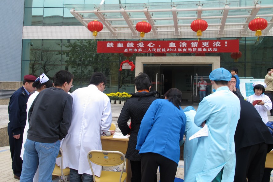 每年春节后,是一年中无偿献血难度最大的“献血淡季”,为此惠州市第三人民医院与惠州中心血站联合惠州市平潭机场医院,发动广大医护人员与平潭机场空军官兵,率先垂范,220日上午10时在新大楼门口和平潭机场医院,开展了一年一度的无偿献血活动。