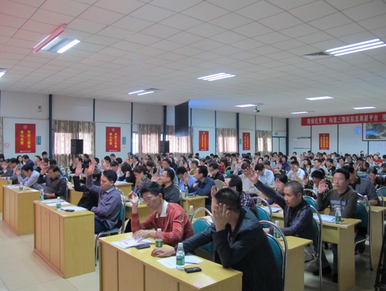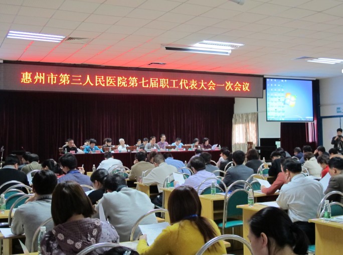 我院工会主席何小慧在会上做了我院工会第六届委员会的工作报告、《惠州市第三人民医院2013~2015年发展规划(工作设想)(草案)》报告。
