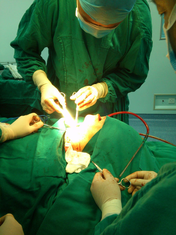 在王豪主任和邹凤主任经过四个多小时的抢救中,行食管、气管修补术,喉功能重建术后转ICU继续治疗。王豪主任术后非常惋惜说:“虽然没有伤到重要血管能救回生命,但是食管,气管损失严重,术后功能恢复将会是漫长的过程。”
