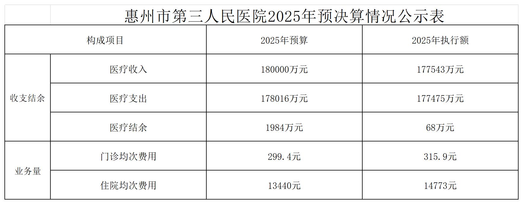 惠州市第三人民医院2025年公立医院预决算执行情况表