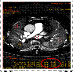 ROI 1(低灌注区): 碘的物质浓度1.40mg/ml