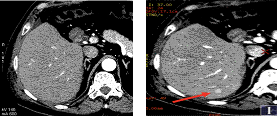 人体内的很多小病灶也同样容易被混合能量成像的常规CT所掩盖,但是在单能量成像下,这些小病灶会突显出来,这样,可以提高癌症早期诊断的能力。