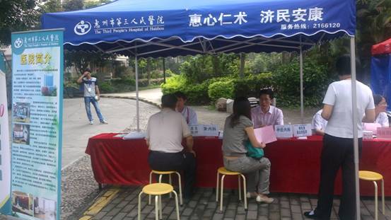 活动分别于4月20日和5月11日分两个场次举行,主要由医疗义诊、儿童漂书、美容美发美体美甲和义卖等活动构成,充分兼顾到男女老少不同人群的需要,活动现场热闹红火,大家在参与的过程中也收获了一份好心情。我院依旧是参与医疗义诊环节,耳鼻咽喉-头颈外科、神经内科和肾内科积极参加了活动,为有需要的居民提供免费检查、健康咨询。对于耳鼻咽喉和神经内科主任亲自出诊,街坊们都表示很感谢,因为“平时去到医院就诊都要麻烦一些,今天能在家门口就咨询到主任专家,三院确实越来越为老百姓着想了。”