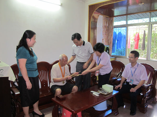 2013626上午,区卫生局邹忠平局长、局党委梁小红副书记及我院党总支副书记李春兰副院长、邓汉东副院长一行,专程到我院党龄超50年的老党员梁国栋家里进行慰问,送上奖牌、慰问金和节日问候,使他们切身感受到了党的关怀,体会到了党的温暖。(党办杨德雄)