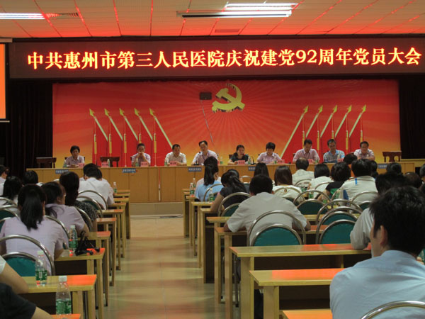 6月27日下午,我院召开全院党员大会,医院党总支领导班子和200多名党员参加了会议,惠城区卫生局党委副书记梁小红和纪检组组长潘光辉等领导莅临会议现场。大会由李春兰副书记主持。
