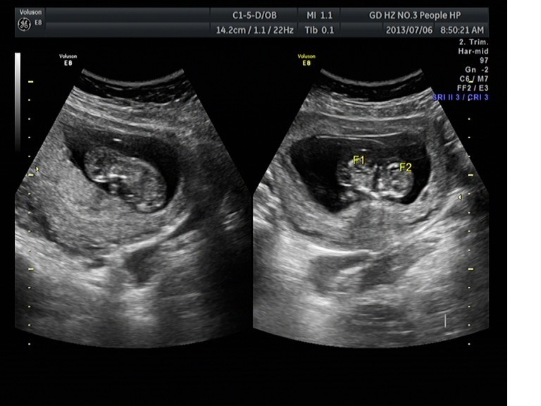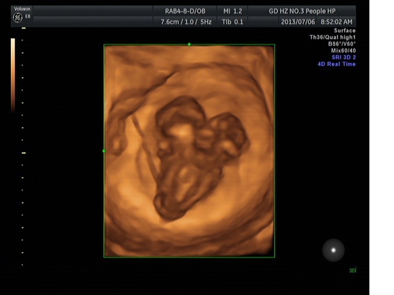 随着环境污染日益严重,随着各种地沟油的诞生,随着各样镉大米的泛滥……我们的健康越来越受到威胁,很多疾病也随之接踵而至,胎儿先天性疾病也越来越多见。7月6日,我院超声科王瑶医生在做胎儿产前NT筛查中发现一例孕约11周+的联体双胎。超声所见:增大的子宫内可见联体双胎儿回声,可见两个胎头不能分离,胸部及腹部融合,可见一个增大的心脏。