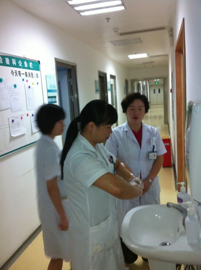 最后,邱淑妍同志为大家详细地介绍了手卫生洗手指针和正确的洗手方法,并在现场带领大家一起学习,会后还对全科同事进行手卫生洗手考核。