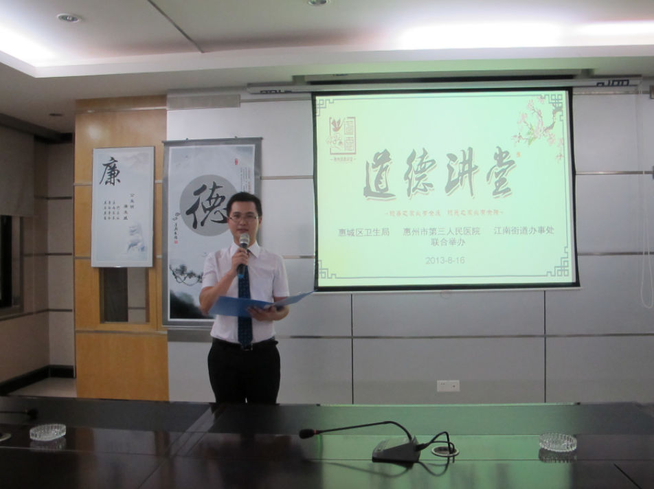 2013年8月16日下午,在江南街道办文化站4楼,我院与惠城区卫生局、江南社区举办第一期道德讲堂。