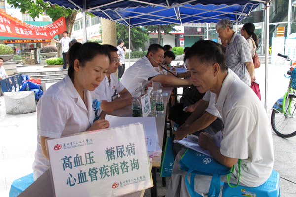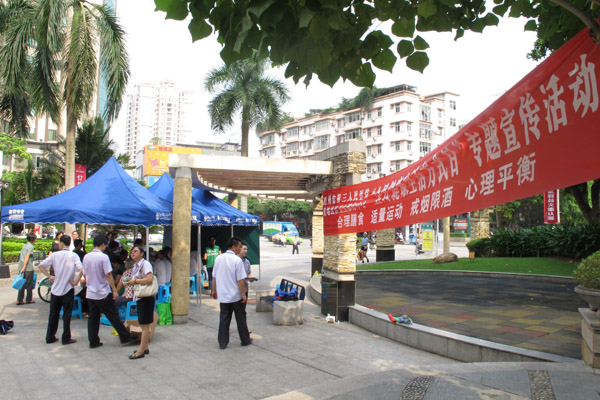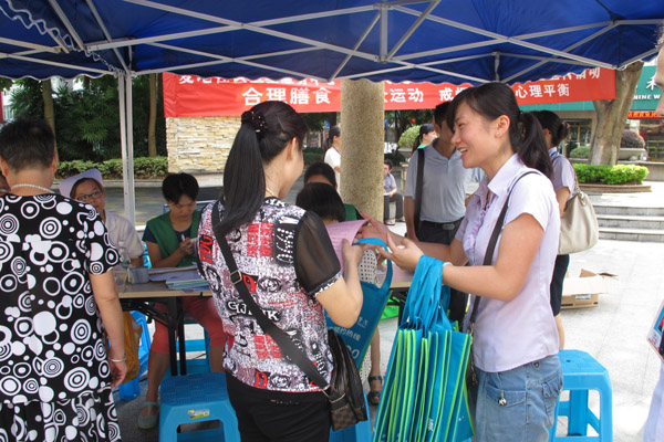 9月1日为全民健康生活方式日,今年全民健康生活方式日的主题是“和谐我生活,健康惠州人”。为进一步推进我市全民健康生活方式行动的开展,提高居民健康意识,培养健康生活方式行为能力,有效预防和控制心脑血管疾病、糖尿病、肥胖等主要慢性病及其危险因素,我院日前联合桥西街道麦地社区卫生服务中心于数码街广场举行专题健康咨询活动,倡导合理膳食、适量运动、戒烟限酒、心理平衡。