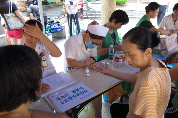 本次活动以高血压、糖尿病、心血管疾病为主要咨询内容,并现场为路过市民免费量血压、测血糖、测身高体重,空腹血糖指标异常和有相关病史的老人家可现场咨询专科医生,得到健康指导。不少老人家刚刚结束晨练,对健康咨询活动已经习以为常,而且都会积极踊跃参与进来,有着很强的防病保健意识。