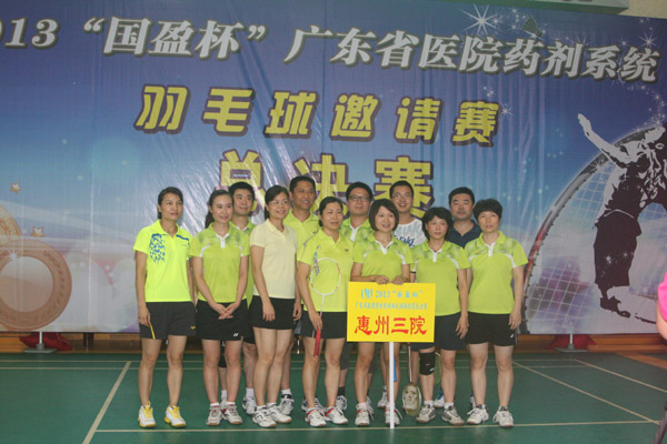 201397,在医院领导的亲切关怀、药学部主任叶立新领队的带队下,我院药学部一行15人参加了在广州市海珠区体育馆举行的2013年广东省“国盈杯”药剂系统羽毛球总决赛的比赛。