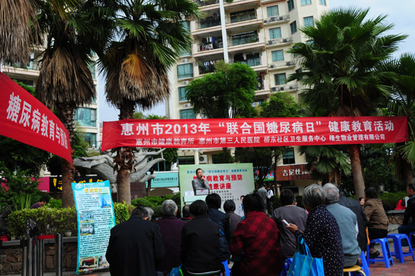 11月14日我们迎来了第七个“联合国糖尿病日”,今年的主题依然是“糖尿病教育与预防”。当日,我院与市健教所、桥东社区卫生服务中心、隆生物业管理有限公司联合行动,把丰富多彩、形式多样的健康教育活动带到了东湖社区,声情并茂地为街坊们分享了血糖的日常生活管理知识。