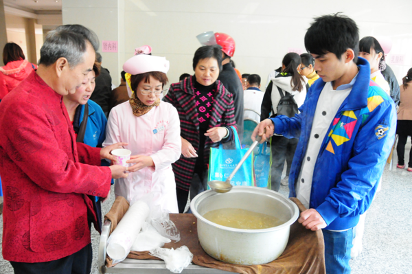 随着中山二院的教授们从广州准时赶到,义诊正式开始,不过考虑到室外寒冷风大,为了防止大家着凉感冒,我院迅速启动应急方案,将义诊现场有序得移到了楼内大厅,与此同时饭堂也送来了热气腾腾的姜汤,各位街坊跟专家们都喝上一杯,融融暖流在候诊大厅弥散开来。